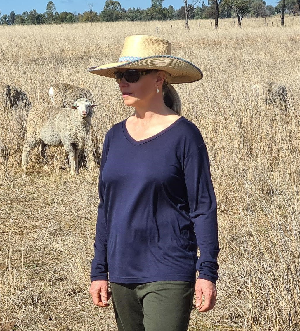 During the drought of 2019, Julie started Sleepy Merino as a side hustle to diversify wool income. She had a background in agricultural research, so was aware of research into Merino's sleep enhancing properties, but was tired of sleeping in clingy Merino thermals.